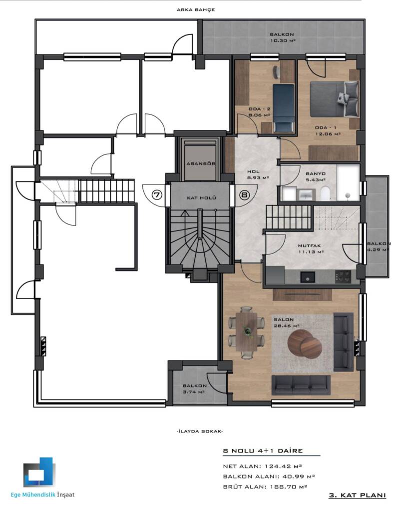 Yapımı devam eden Ege Luna projemiz, Barbaros Mahallesi İlayda Sokak üzerinde bulunmakta olup, 2+1 ve 3+1 daire seçenekleri ile 8 bağımsız bölümden oluşmaktadır.